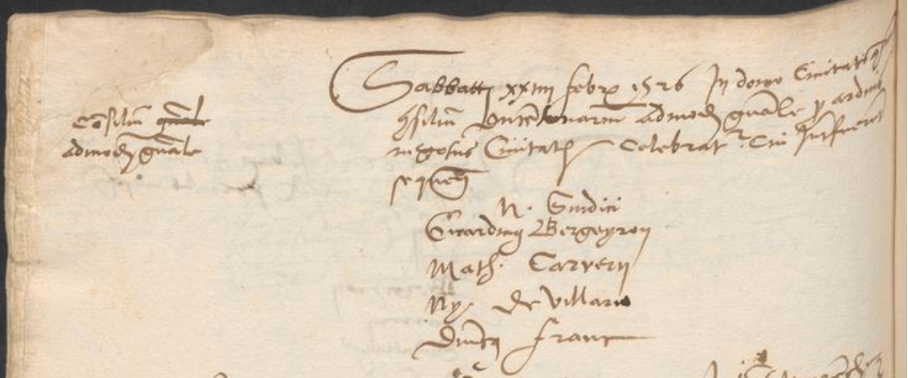 Séance du Petit Conseil du 4 décembre 1566, en marge: Conte Palatin AEG R.C. 61, f. 119 v.