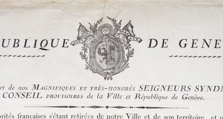 Archives d’Etat de Genève, « L’entrée de Genève dans la Confédération », https://archives-etat-ge.ch/page_de_base/entree-de-geneve-dans-la-confederation/.